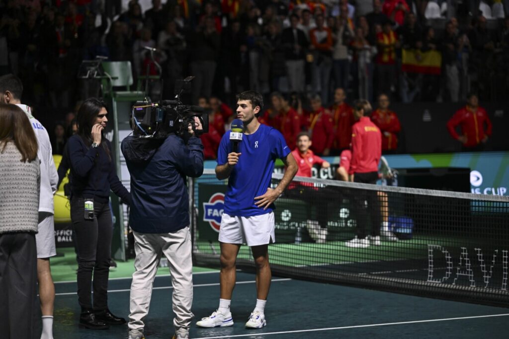 “Fateme parlà ao”, queste le prime eloquenti parole di Flavio Cobolli ai microfoni di SuperTennis, pochi minuti dopo la vittoria su Munar che ha consegnato all’Italia la terza Coppa Davis consecutiva. Il palazzetto di BolognaFerie non smetteva di intonare il suo nome, con i festeggiamenti che dilagavano anche sugli spalti e un’atmosfera da mettere i brividi. Quando è finalmente riuscito a prendere la parola, però, con la spontaneità di chi ancora forse non è riuscito a metabolizzare quanto accaduto ha ammesso “non so che dire” e giù a ridere.