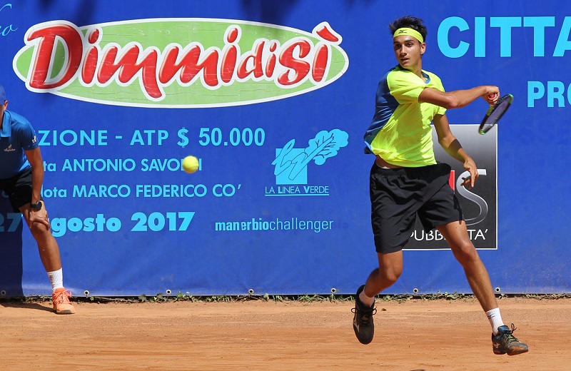 Un fastidioso stop di due mesi ha bloccato la stagione di Lorenzo Sonego. “Ho avuto una tendinite al polso e poi ho cambiato telaio”. A Manerbio ha ritrovato il suo tennis, un servizio tutto nuovo e ha fissato l'obiettivo: “Qualificazioni Slam nel 2018”. (Foto di Felice Calabrò)