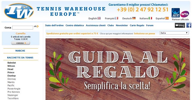Arriva il Natale ed è tempo di regali. Non importa se c'è crisi, la tradizione deve essere rispettata. Magari con un bell'omaggio tennistico. E non c'è niente di meglio di Tennis Warehouse, il mega-store online in grado di garantire un'offerta completa e variegata, peraltro a prezzi più che convenienti. Con gli anni, il mega-negozio di Schutterwald (Germania, sede di Tennis Warehouse Europe) è entrato negli usi e costumi di tutti gli appassionati. La rapidità e l'efficienza del servizio, unita alla varietà dei prodotti (non sempre reperibili in negozio) lo hanno reso un punto di riferimento assoluto. Basta fare un salto sul sito www.tenniswarehouse-europe.com e troverete davvero di tutto. Racchette, scarpe, corde, abbigliamento, accessori…talmente tanto materiale da passare una mattinata intera sul sito. Il bello è che Tennis Warehouse garantisce il prezzo minimo, aggiungendo il sollievo del portafoglio alla migliore qualità possibile. Il bello di TWE, tuttavia, sta nelle offerte promozionali. Ogni mese c'è qualcosa di nuovo, spesso imperdibile.