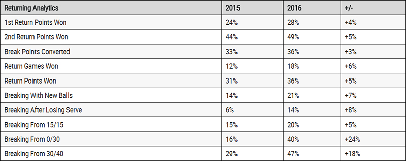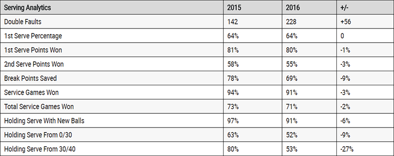 Il 2016 è stata una grande stagione per Milos Raonic: nonostante qualche infortunio di troppo ha chiuso da numero 3, oltre 10 posti più su dell'anno precedente, e con in tasca una finale a Wimbledon. Eppure, i numeri dicono che al servizio è peggiorato. Ma è cresciuto tantissimo in ribattuta.Quando, a metà 2013, Ivan Ljubicic è diventato coach di Milos Raonic, aveva sorpreso una sua frase. Mentre l’idea altrui era che il suo nuovo assistito dovesse lavorare principalmente sui colpi di rimbalzo, lasciando da parte il servizio già devastante, la sua era più o meno l’opposto: concentrarsi ancora di più sulla battuta, per renderla veramente una macchina da guerra. Difficile dire se avesse ragione, visto che gli è stato a fianco solamente un anno e mezzo nel quale hanno dovuto fare i conti con vari problemi di natura fisica, anche se uno studio pubblicato dal sito ATP sembrerebbe dargli torto. Malgrado qualche infortunio di troppo nei momenti meno opportuni – durante la semifinale a Melbourne e la finale a Indian Wells, prima delle semifinali di Pechino e Parigi Bercy – nel 2016 il canadese ha disputato la miglior stagione della sua carriera, chiudendola col best ranking di numero 3. Ha conquistato un solo titolo, nella prima settimana dell’anno a Brisbane, ma ha vinto oltre 50 incontri, e soprattutto è arrivato in finale sull’erba di Wimbledon, sfiorando lo stesso risultato alle ATP Finals. Il tutto, udite udite, con un rendimento al servizio decisamente inferiore (sì, inferiore) rispetto ai dodici mesi precedenti. Nel corso dell’anno il 26enne originario del Montenegro ha subìto oltre il doppio dei break rispetto alla stagione precedente, e il fatto che abbia giocato venti incontri in più incide fino a un certo punto. Basta una semplice proporzione: se nel 2015 ha perso la battuta 39 volte in 49 incontri, nei 69 del 2016 il totale avrebbe dovuto assestarsi intorno al 54. Invece è di ben 86 break. Eppure, Milos è passato dal numero 14 di gennaio al numero 3 di novembre, mostrando progressi importanti a tutto campo. Risultato reso possibile da una crescita notevole nei turni di risposta.SERVIZIO – I numeri parlano chiaro: al di là del totale di doppi falli, che dipende esclusivamente dai venti match disputati in più (+56 in 20 incontri, media di meno tre a partita), Raonic è peggiorato dappertutto tranne nella percentuale di prime in campo, rimasta invariata al 64%. Per il resto non c’è alcun saldo positivo. Ha vinto meno punti con la prima, meno punti con la seconda, meno game di servizio, meno punti totali al servizio (alla settima riga della tabella pubblicata dall’ATP c’è un refuso: si tratta dei punti, non dei giochi), e poi ancora meno turni di battuta con le palle nuove e meno game di servizio complicati, nei quali si è trovato sotto per 0/30 o 30/40. Per un giocatore che agli occhi degli appassionati basa il suo tennis esclusivamente sul servizio, questi dati sarebbero sinonimo di una stagione in tutto e per tutto peggiore della precedente. Invece è andata esattamente al contrario.RISPOSTA – Il motivo, come accennato, sta in una crescita impressionante nei game di risposta. C’è dietro un lavoro evidente, sotto più aspetti. Dalla ribattuta in sé, alla maggiore attenzione ai game di risposta, ma anche un rovescio sempre più efficace e la scelta di spingere di più nei primi punti degli scambi. Un nuovo approccio che ha dato risultati al di sopra delle aspettative, fino all’incredibile statistica comparsa dopo il suo ultimo match dell’anno, la semifinale persa 5-7 7-6 7-6 contro il numero uno del mondo Andy Murray alle ATP World Tour Finals. Il bilancio del match mostrava un numero difficile da immaginare: la maggior parte dei punti durati più di 9 colpi se li è aggiudicati lui, 16 contro 14. Contro Murray! In generale, il dato più importante dell’anno riguarda la capacità del canadese di strappare la battuta agli avversari. Nel 2015 ce l’ha fatta 77 volte in 629 game di risposta, con la media di un break ogni 8.2 giochi. Quest’anno, invece, l’ha ridotta a 5.5, ottenendo 164 break in 893 turni col rivale al servizio. Un passo avanti veramente notevole, che trova conferma in una tabella infarcita di segni “+”. Rispetto a prima, il Raonic 2.0 vince più punti in risposta alla prima e alla seconda (è prossimo al 50%, un punto su due), più game, trasforma più palle break e – altro dato interessante – è passato da 6% al 14% nei game di risposta vinti appena dopo aver perso la battuta. Ultimo, a conferma del fatto che in generale dedichi molta più attenzione ai turni di risposta, sono salite tantissimo le percentuali dei giochi vinti da situazioni di vantaggio. Nel 2015 quando saliva 0/30 in risposta riusciva a ottenere il break una volta su sei, quest’anno due volte su cinque. In sintesi, in un tennis in cui la risposta è sempre più importante – come attestato dal dominio dei due più grandi ribattitori del tour: Andy Murray e Novak Djokovic – Raonic è stato disposto a sacrificare leggermente il suo colpo migliore pur di crescere in ribattuta e stare al passo coi tempi. Una scelta che ha pagato. E pagherà ancora.