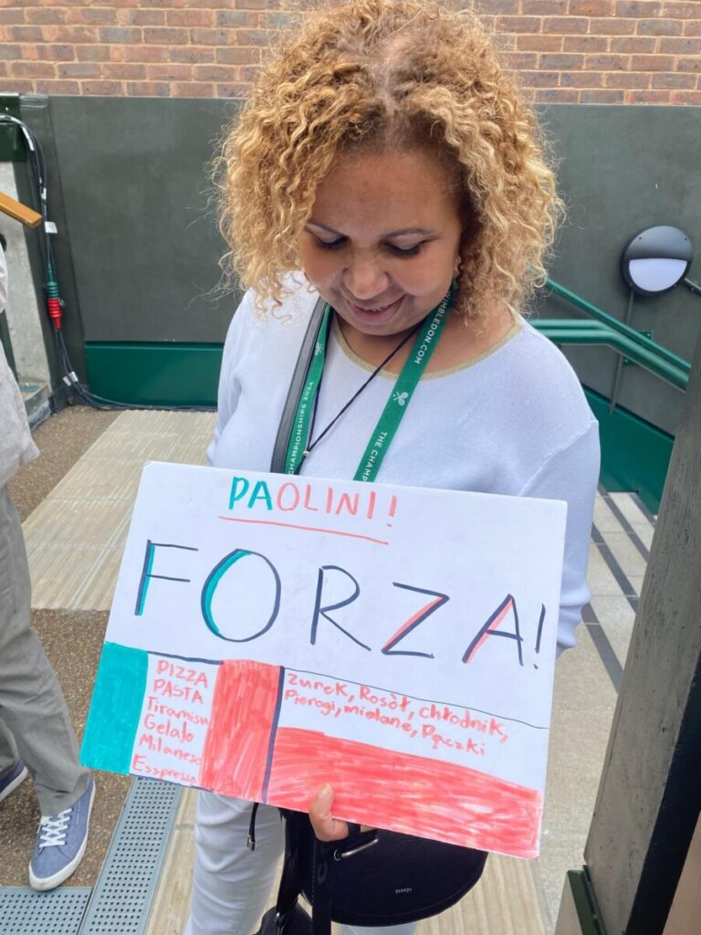 “E’ tutta la mamma!” sorride orgogliosa – ma questa solarità la si era già notata dai primi piani televisivi, persino nei momenti di maggior tensione e difficoltà. Confessa ai giornalisti presenti le emozioni ancora vive del match appena trascorso, e mostra il cartello donatole da una ragazzina polacca tifosa di Jasmine la mattina stessa, poco prima di raggiungere l’All England Club.