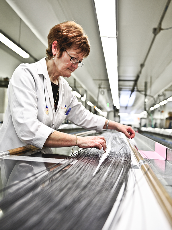 È anche il momento in cui si verifica la maggior differenza rispetto a quanto si faceva una volta, quando venivano utilizzati 13 filamenti da 21 millimetri ciascuno.: «Non si perde nulla in termini di sensibilità – dicono gli esperti del laboratorio – ma si guadagna in resistenza». Dici niente: il budello è certamente la corda più preziosa, quella più sensibile e confortevole, ma anche la più delicata e costosa, due fattori che sono un campanello d’allarme per l’utente finale. Perché se una serata di forte umidità è sufficiente a far rompere una corda da cinquanta euro, è chiaro che se diventa un filo più resistente (del 15% secondo gli ingegneri Babolat), è pura gioia per gli appassionati.Ma continuiamo col processo di lavorazione. Le corde subiscono sette bagni chimici durante le successive 24 ore per lavarle e ripulirle. Dopo altre 12 ore di sgocciolamento, vengono tese per l’essiccazione e un’altra giornata serve per estrarre l’acqua da ciascuna corda, mediante un abbassamento controllato del tasso di umidità e una serie di torsioni automatizzate. Quest’ultima operazione consente anche di ripartire gli sforzi su ciascun filamento, permettendo una miglior coesione tra loro. Qui entra in scena una macchina fondamentale, quella che misura il calibro che varia, a seconda del modello, da 1,25 a 1,30 millimetri. Una differenza sottile ma che può diventare gigantesca quando si deve indirizzare una pallina da sei centimetri di diametro a due dita dalla riga a una velocità superiore ai 200 km/h. La corda viene dunque infilata nella macchina per tutta la sua lunghezza con la lucidatura che viene realizzata in ultima istanza.Ciascuna partita di corda è testata a campione con un apposito strumento dinanometrico, benché 138 anni di esperienza siano una notevole garanzia. A questo punto, tutto passa nelle mani della Professoressa. Appare così, la signora con gli occhialetti, sguardo attento e occhi da far invidia a Clark Kent, capace di individuare la minima imperfezione. Come faccia è un mistero ma soprattutto una preoccupazione. Se difatti un macchinario più evoluto lo puoi sempre acquistare, dove trovare nuovi artigiani del budello? Mica facile. Eppure trovare nuove risorse umane è un fattore importante per continuare produzioni così complesse. Ma finalmente riusciamo a completare questo processo infinito, quanto affascinante. Ogni corda viene avvolta su una sorta di rullo prima di essere legata a un collare. Qui interviene un’altra signora, non meno sorprendente. Il suo compito prevede il controllo tattile di ciascun metro di corda, lasciandola scorrere tra il pollice e l’indice. Mais oui, avete capito bene. Il tutto avviene in un apposito laboratorio per evitare qualsiasi variazione di umidità, la peggior nemica di una corda in budello naturale. Infine, la corda viene infilata nel sacchetto che trovate appeso nei negozi. Anche questa bustina è creata in maniera tale da preservare la corda da variazioni di umidità e dall’esposizione alla luce che ne possano alterare le prestazioni. Et voilà, venti giorni dopo aver ricevuto la materia prima dal mattatoio, ecco confezionata la corda più bella, performante e, ahimè, costosa del mondo.