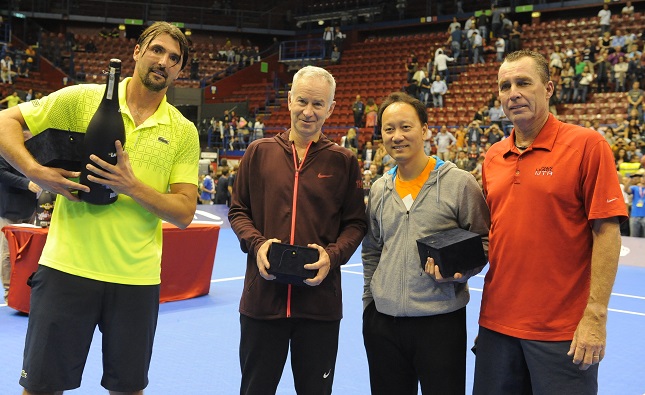 Nella finale per il terzo posto, il Mediolanum Forum ha gioito per la vittoria di John McEnroe, forse il più atteso tra i quattro campioni. Dopo l'onorevole resa in semifinale (dovuta a motivi anagrafici più che tecnici…), ha vinto con agio contro Michael Chang, sconfitto con un doppio 6-3 in circa 75 minuti. Paradossalmente, nonostante i 13 anni di differenza (McEnroe ha 55 anni, Chang 42), ha mostrato una migliore condizione fisica. Chang non stava benissimo, era un po' sofferente alla schiena e ha perso incisività al servizio. Inoltre, ha dovuto giocare diversi rovesci in slice. McEnroe era carico e motivato, mostrando le peculiarità che lo hanno reso famoso: le gag con pubblico e giudice di sedia, pur senza perdere la concentrazione. Al cambio di campo sul 3-2 nel primo set, John ha scaraventato la sua racchetta per terra. Rimbalzando sul Play-It, è finita sul campo di Chang, che l'ha raccolta…e stava per metterla in borsa! Quando McEnroe l'ha reclamata, il buon Michael ha mimato il gesto della racchetta spaccata con una coscia. Rientrati in campo, Mac si è scatenato e ha trovato il break decisivo al termine di un game eccezionale per qualità e spettacolo. Dopo essersi salvato sul 2-3 (cancellando una palla break con un gran dritto in recupero), è passato in vantaggio con alcuni capolavori sotto rete, che hanno scatenato l'entusiasmo suo e del pubblico. Nel secondo set, una volta preso il largo, ha amministrato il vantaggio e ha chiuso senza patemi. E si è preso un'ovazione, facendo arrivare l'applausometro a vette impensabili per gli altri protagonisti. E' il fascino del Grande Mac.