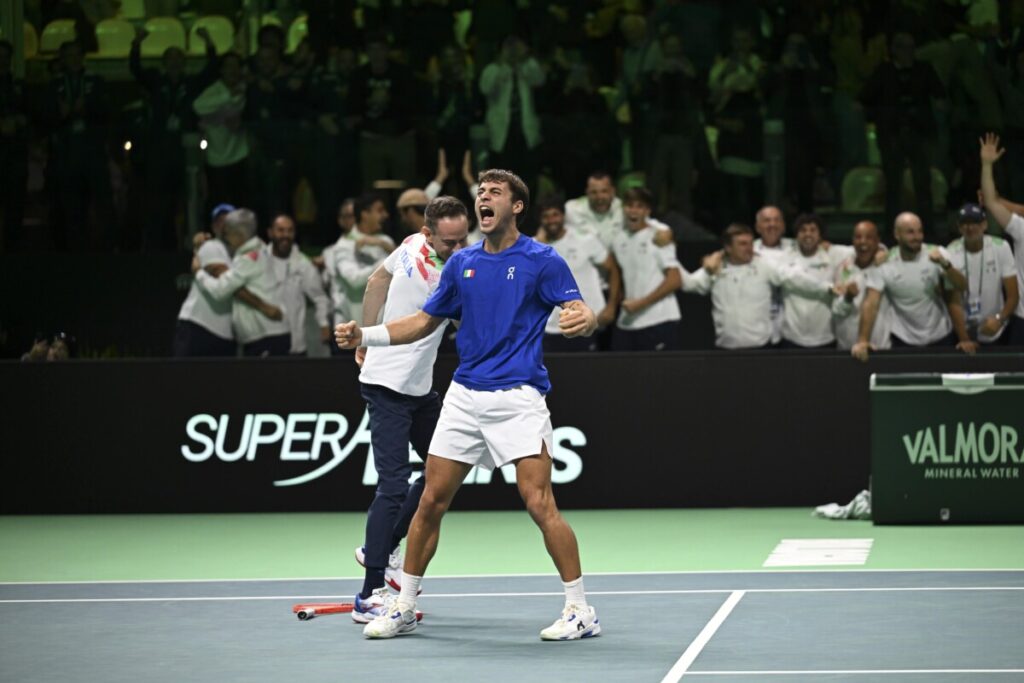 Flavio Cobolli ha regalato emozioni che resteranno a lungo nel cuore di ogni appassionato di tennis, in quell’incredibile tie-break vinto per 17-15 contro Zizou Bergs che è valso all’Italia l’accesso alla terza finale consecutiva di Coppa Davis. Lontano dal campo di gioco, il tennista romano ha vinto inconsapevolmente un’altra partita – altrettanto difficile – che fino a qualche tempo sembrava impossibile anche solo pensare: quella degli ascolti televisivi. Il match tra Cobolli e Bergs è stato trasmesso in chiaro su SuperTennis e su Rai 1, costringendo il primo canale nazionale a rivedere in maniera pesante il proprio palinsesto: il tg1 è slittato al termine dell’incontro, e il programma di punta “affari tuoi” è stato trasmesso solamente alle 21:30, un’ora più tardi del solito.