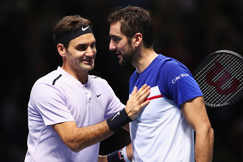 Pur già sicuro del primo posto nel Gruppo Becker, Roger Federer conquista anche il terzo e ultimo match del round robin delle ATP Finals, emergendo alla distanza contro Marin Cilic. Lo svizzero non sta giocando il suo miglior tennis della stagione, ma la superficie amica lo aiuta, come il livello e le condizioni non eccezionali degli avversari. Sabato la semifinale contro Goffin o Thiem.Bello ancora no, ma vincente sì. Di nuovo. E in un’edizione delle ATP Finals in cui è rimasto l’unica stella, a Roger Federer può andar bene anche così. Il match contro Marin Cilic, l’ultimo del suo round robin, aveva ben poco valore nell’economia del torneo londinese, ma poteva servire al numero due del mondo come una sorta di test, per mettere ancora un po’ di tennis nelle gambe e trovare quella brillantezza che si era vista solo a sprazzi sia contro Jack Sock sia contro Alexander Zverev. Davanti al suo ex coach Stefan Edberg, seduto nel box del campione di Basilea insieme a Ivan Ljubicic e Severin Luthi, Federer ce l’ha fatta in parte, imponendosi per 6-7 6-4 6-1 ma trovando il ritmo giusto – come ha ammesso lui stesso nell’intervista post-match – solamente nelle fasi finali del secondo set. Comunque in tempo per chiudere il Gruppo Becker senza fare scherzi, ma un po’ tardino in ottica prossimi impegni, anche perché fino a quel momento il migliore dei due era stato Marin Cilic, già eliminato ma desideroso di chiudere in modo positivo il suo buon 2017. Anche il croato ci è riuscito a metà, faticando di più rispetto allo svizzero a raggiungere il tie-break del primo set, ma poi andando a vincerlo in grande stile, con uno splendido allungo dal 5-5. Nell’undicesimo punto ha alternato cannone e fioretto, prendendo in mano lo scambio con una gran risposta e chiudendolo con una precisa chiusura a rete, di polso. E gli è bastato il primo set-point: ha iniziato il punto con una buona prima di servizio, l’ha chiuso con una fucilata di diritto e si è preso il set d’apertura, sigillato col colpo vincente numero 20. Tuttavia, col passare dei minuti Federer è diventato via via sempre più incisivo, più preciso in risposta, e dopo aver scampato il pericolo palla-break (sull’1-1 del secondo) con una delicata palla corta, non ha più concesso praticamente nulla.SEMIFINALE CONTRO GOFFIN O THIEM Una volta trovata la continuità nei turni di battuta, Federer ha avuto solo bisogno di concentrarsi sui game di risposta, con l’obiettivo di trovare quell’allungo che gli era sempre sfuggito. Ce l’ha fatta nel decimo game, avanti 5-4, con una discreta mano dell’avversario. Cilic ha pasticciato e gli ha regalato due palle-break, poi ci ha aggiunto anche un errore di rovescio e in un colpo solo ha detto addio a servizio, set e match. Le speranze di giocarsela alla pari anche nel terzo, infatti, sono svanite di lì a poco, quando Federer l’ha fulminato con una splendida risposta di diritto, si è preso il break del 2-0 e poi è scappato via, chiudendo dopo 1 ora e 54 minuti. E solo al momento di firmare la telecamera, come già martedì contro Zverev, si è lasciato andare al primo sorriso del match. Due giorni fa era arrabbiato perché proprio non riusciva a trovare il suo tennis, mentre stavolta è andata comunque un tantino meglio, ma il Federer dell’O2 Arena ha comunque poco a che vedere con la sua miglior versione vista nei mesi scorsi. “È stato un match duro – ha detto il 35enne di Basilea – perché Cilic ha servito sempre bene e io mi sono lasciato scappare qualche chance. Lui ha giocato meglio nel tie-break e io ho commesso qualche errore nei momenti importanti. Tuttavia, malgrado sia stato sotto di un set e con una palla-break per il mio avversario, ho trovato comunque il modo per riprendere in mano l’incontro. Nel corso dell’anno giochiamo spesso con parecchia tensione, così oggi ho provato a rilassarmi e godermi l’incontro. Comunque ci tenevo a vincere, per dar seguito al mio momento positivo”. Chiudendo al primo posto del girone, Federer si è garantito la sfida in semifinale contro il secondo classificato del Gruppo Sampras: David Goffin o Dominic Thiem. Roger non sta giocando al massimo, ma entrambi sembrano messi peggio di lui.