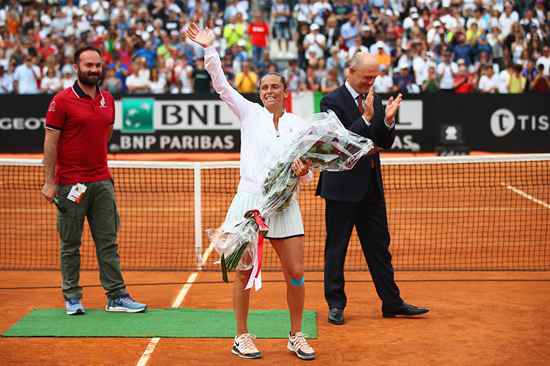 Solitamente, ogni ritiro porta con sé un po’ di amarezza e qualche lacrima, e anche un pizzico di perplessità, perché finisce una vita e ne inizia un’altra. Roberta, invece, il suo addio lo voleva pieno di sorrisi e di ricordi dolci, con mamma Luisa, papà Angelo e il fratello Francesco in prima fila, insieme ai ragazzini del suo Ct Taranto. Dopo l'abbraccio con la Krunic ha indossato un giacchetto bianco col suo nome sulla schiena, è corsa al suo angolo e poi e si è goduta il filmato preparato ad hoc per salutarla, con le immagini di buona parte dei trionfi di una carriera impreziosita da dieci titoli WTA in singolare e 25 in doppio, compresi tutti i quattro tornei del Grande Slam. Più quattro Fed Cup con l’Italia. Ad aprire il video c’erano le immagini della prima, nel 2006 contro il Belgio, mentre la chiusura non poteva che essere con la finale dello Us Open, il punto più alto della vita sportiva della Roberta tennista, ma anche del personaggio Vinci. Di quella ragazza normale che inizia il suo discorso d’addio a bassa voce, ringraziando tutte le persone importanti incrociate lungo il percorso che l’ha resa una delle quattro tenniste azzurre più forti di tutti i tempi, ma a un certo punto si lascia andare. Alza la voce, e tira fuori tutta la sua genuinità, strillando un lungo grazie e pronunciando frasi come “da domani sono in vacanza”, o “non ne potevo più”, condite da tante risate. Dette da qualsiasi altra tennista avrebbero fatto un effetto diverso, ma Roberta è così, il pubblico italiano lo sa e la apprezza anche per questo, da ventun’anni. Ventuno come le rose rosse che le ha consegnato il presidente FIT Angelo Binaghi, proprio a simboleggiare tutte le stagioni trascorse nel circuito mondiale, dal 1997 a Galatina al 2018 al Foro Italico. Peccato non aver visto alla sua festa le amiche e compagne di una vita: Sara Errani (che giocava il doppio in contemporanea), Francesca Schiavone e Flavia Pennetta, e anche lo storico coach Francesco Cinà. Una come Roberta meritava che ci fossero proprio tutti, ma resta una piccola nota stonata in un concerto di emozioni. E mentre a lei, forse, il tennis non mancherà, si può star certi che una come lei mancherà al tennis. Parecchio.