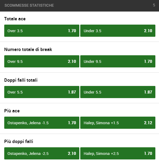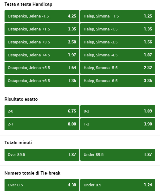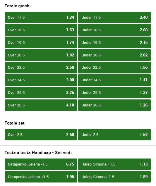 Quota UNIBET: Halep 1,34. Ostapenko 3,45.