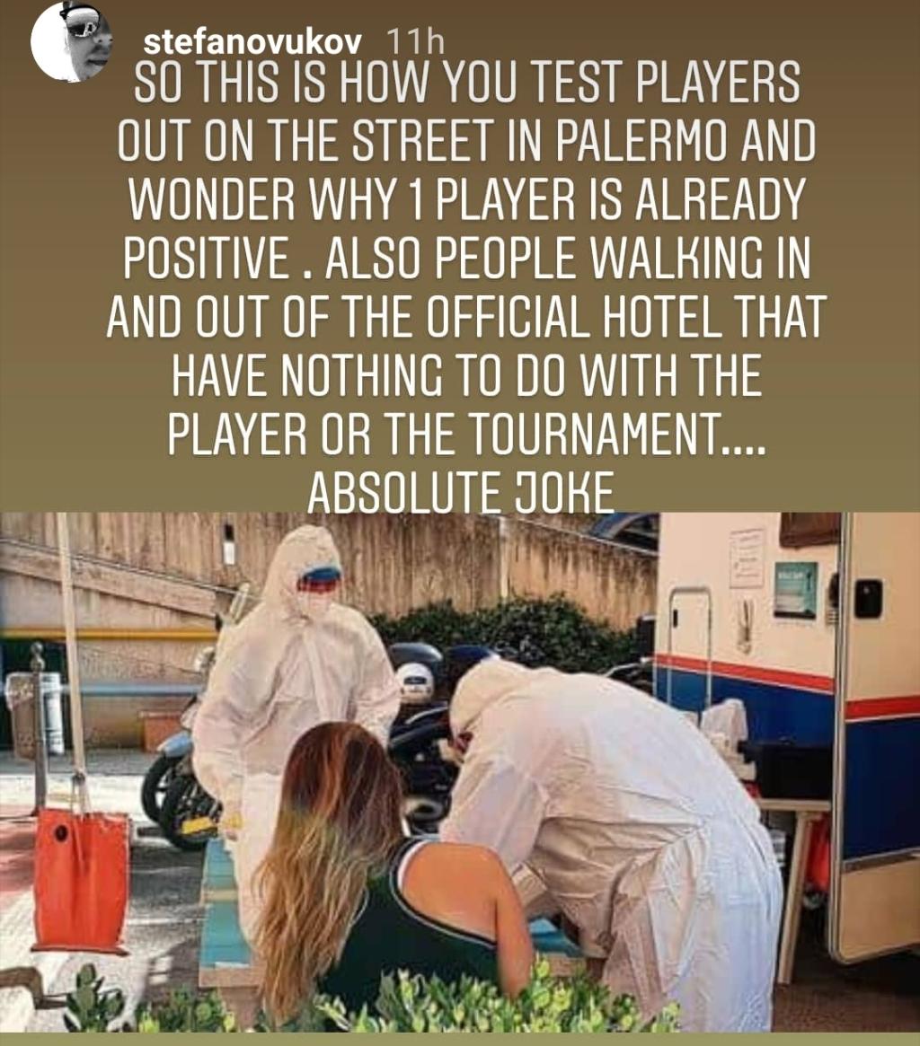 Esclusa fortunatamente la positività a torneo non ancora cominciato, spicca comunque qualche accenno di polemica, soprattutto in merito ai tamponi e alla gestione dei test. Ad alzare la voce è il coach di Elena Rybakina, Stefano Vukov, che con un post su Instagram esprime senza mezzi termini il suo pensiero con tanto di foto: “Così è come testano le giocatrici in mezzo alla strada – scrive facendo riferimento alla positività poi rientrata -. Ci sono persone che entrano ed escono dall’hotel e non hanno niente a che fare con il torneo”.