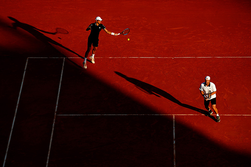 Sarà anche un “malato terminale”, come l’ha spesso definito Rino Tommasi, e per il momento la cura non l’ha ancora trovata nessuno (ammesso che esista), ma il doppio resta un concentrato di spettacolo che spesso il singolare non sa garantire, nemmeno con in campo i più forti giocatori del mondo. E coi giochi di luci e ombre tipici del Principato di Monaco, uniti al buon occhio del fotografo inglese Julian Finney, possono venire foto come questa.
