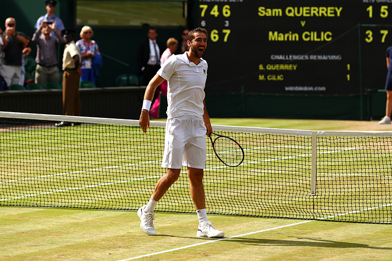 La finale conquistata a Wimbledon dice che il famoso successo di Marin Cilic allo Us Open di tre anni fa non era solamente un episodio isolato. Il croato doma Sam Querrey in quattro set, dà ragione all’ex coach Goran Ivanisevic che gli aveva dato più chance rispetto a Murray e Djokovic, ed è pronto a cercare il suo secondo titolo Slam.A levargli dai piedi Rafael Nadal ci ha pensato un meraviglioso Gilles Muller, mentre il compito di battere il campione uscente Andy Murray gliel’ha risparmiato Sam Querrey, ma in finale a Wimbledon nella parte alta del tabellone ci è andato Marin Cilic. Il tennis va anche così: non bastano gli exploit, serve soprattutto la continuità, e nell’edizione 2017 dei Championships il gigante nativo di Medjugorje è quello che – Federer a parte – ne ha mostrata più di tutti. È arrivato ai quarti senza cedere un set, poi ha atteso il crollo di Muller al quinto e quindi ha fatto valere la sua superiorità contro Querrey, già super appagato per la sua prima semifinale in un torneo del Grande Slam. Su un Centre Court che alla fine reggerà discretamente fino al termine del torneo è finita 6-7 6-4 7-6 7-5, dopo un primo set senza l’ombra di una palla-break scivolato via da 4-1 nel tie-break a causa di tre errori col rovescio, e altri tre che invece hanno smentito (almeno in parte) chi si aspettava un duello governato esclusivamente dai servizi. Per carità, non è che il mix fra le caratteristiche dei due giganti di 198 centimetri potesse offrire molto altro, ma si è visto anche qualcosa di interessante e i break ci sono stati, a dare almeno qualche piccola scossa a un pubblico più silenzioso che mai. E la partita Cilic non l’ha vinta con un servizio da 25 ace e appena 9 punti persi con la prima palla, ma con una risposta che ha funzionato alla grande nei momenti delicati: quando doveva vincere a tutti i costi il secondo set, e l’ha fatto. Quando doveva far pentire il rivale della seconda palla servita sul 3-4 del tie-break del terzo, e l’ha fatto. E quando doveva rimettere in piedi un quarto set partito male, con Querrey scappato sul 4-2, per evitare di regalargli la chance di vincere il quarto match di fila al set decisivo. E l’ha fatto, con l’aiuto di qualche errore del rivale ma anche la capacità di farli pesare tutti, prima di esplodere di gioia quando l’ultimo diritto ha portato a 70 il numero dei suoi colpi vincenti.LA PROFEZIA DI GORAN IVANISEVIC