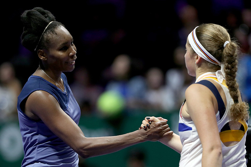 Non è stato il suo miglior match, e se è rimasto vivo per oltre tre ore la ragione è da cercare anche nel rendimento da 5 di Venus stessa, ma per vincere a 37 anni e 4 mesi il match più lungo di una carriera ventennale, contro un’avversaria che potrebbe essere sua figlia, serve un carattere con pochi uguali nel circuito WTA. La Williams non perdeva un tie-break da gennaio, la Ostapenko aveva vinto 19 degli ultimi 22 match finiti al terzo set. Ma in un duello che di logica ne ha avuta ben poca, è andato tutto al contrario. Dopo aver cancellato un match-point sul 4-5, il tie-break se l’è preso la lettone, spezzando l’equilibrio di mini-break col primo punto al servizio, e poi approfittando di tre errori di fila dell’americana. Ma il match è finito nelle tasche di Venus, più per esperienza che per freschezza fisica, più per capacità di stringere i denti che per qualità del tennis mostrato. Ma a tennis si può vincere in mille modi diversi, l’importante è sapersi adattare alla situazione e sfruttare ciò che la giornata offre, anche quando è meno del solito. La vittoria di Venus la tiene in lizza per il passaggio in semifinale, obiettivo raggiunto in tutte le sue quattro partecipazioni precedenti alle Finals, la prima datata addirittura 1999. Per rendere l’idea, la Venere Nera le ha giocate in quattro città diverse: da New York a Singapore, passando per Los Angeles e Doha. Per conquistare di nuovo un posto fra le ultime quattro sarà costretta a battere Garbine Muguruza nella giornata di giovedì, col match più lungo della sua carriera nelle gambe e la lancetta delle energie che difficilmente supererà la metà. Ma è meglio non porle limiti. Ne ha già superati un’infinità.